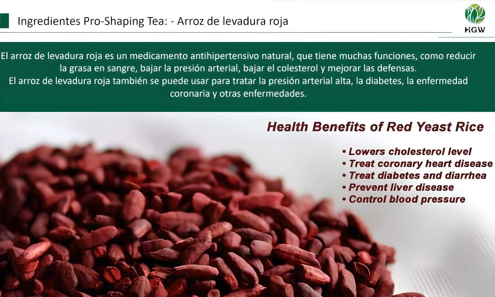 • Sus componentes como el arroz rojo ayudan a reducir la presión arterial y mejorar la circulación.