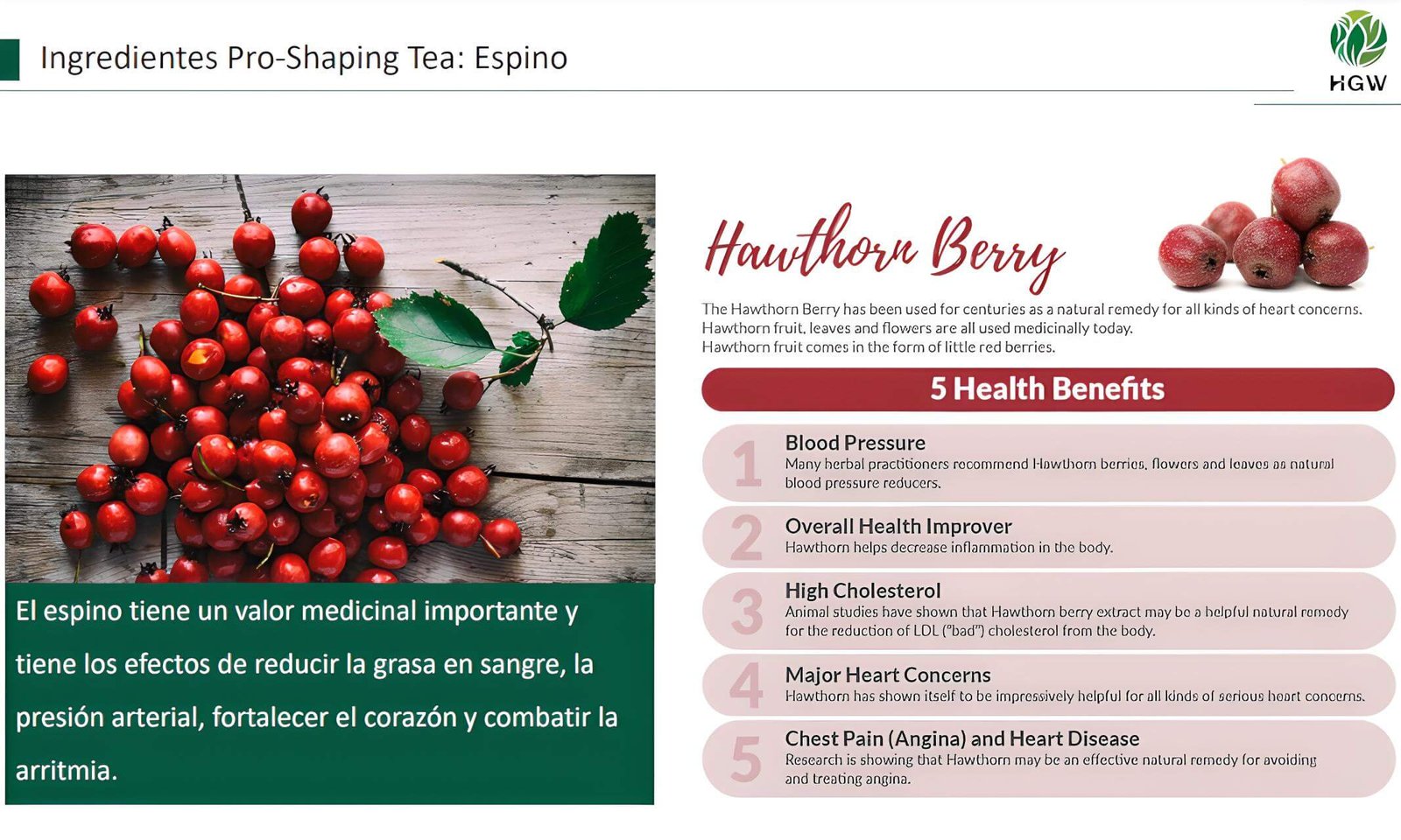 • Contiene ingredientes como espino y ginseng que promueven la salud cardiovascular y reducen los niveles de colesterol.