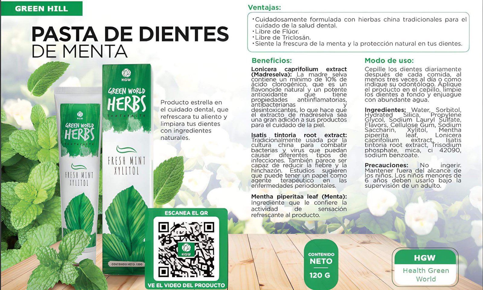 El uso de pasta de dientes que contiene madre selva, que es un material medicinal tradicional chino, ayuda en la prevención y el tratamiento de enfermedades bucales, tales como gingivitis, periodontitis, etc..., además de aliviar el dolor y acelerar la cicatrización. Esta también contiene un mínimo de 10% de acido clorogénico, que es un flavonoide natural y un potente antioxidante que tiene propiedades antiinflamatorias, antibacterianas, y desintoxicantes. Debido a las propiedades de sus ingredientes, la pasta de dientes herbal de HGW también puede inhibir el crecimiento de estreptococos, prevenir la caries dental y la placa dental y fortalecer los dientes.